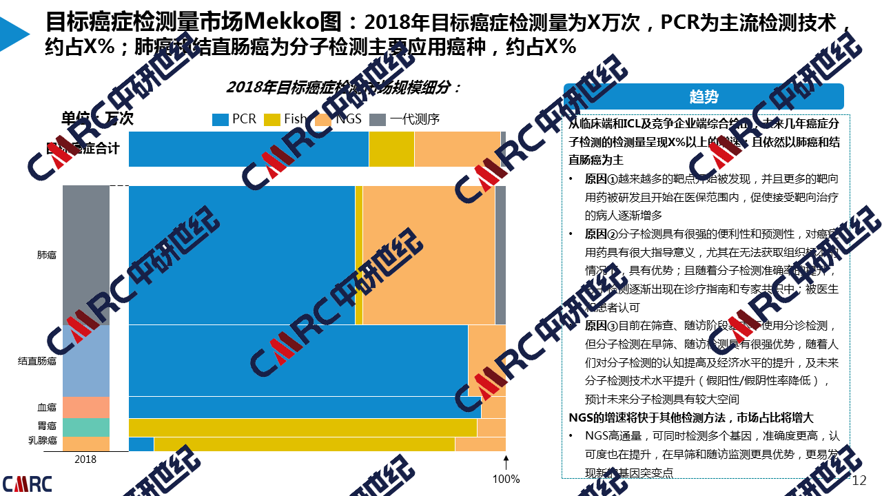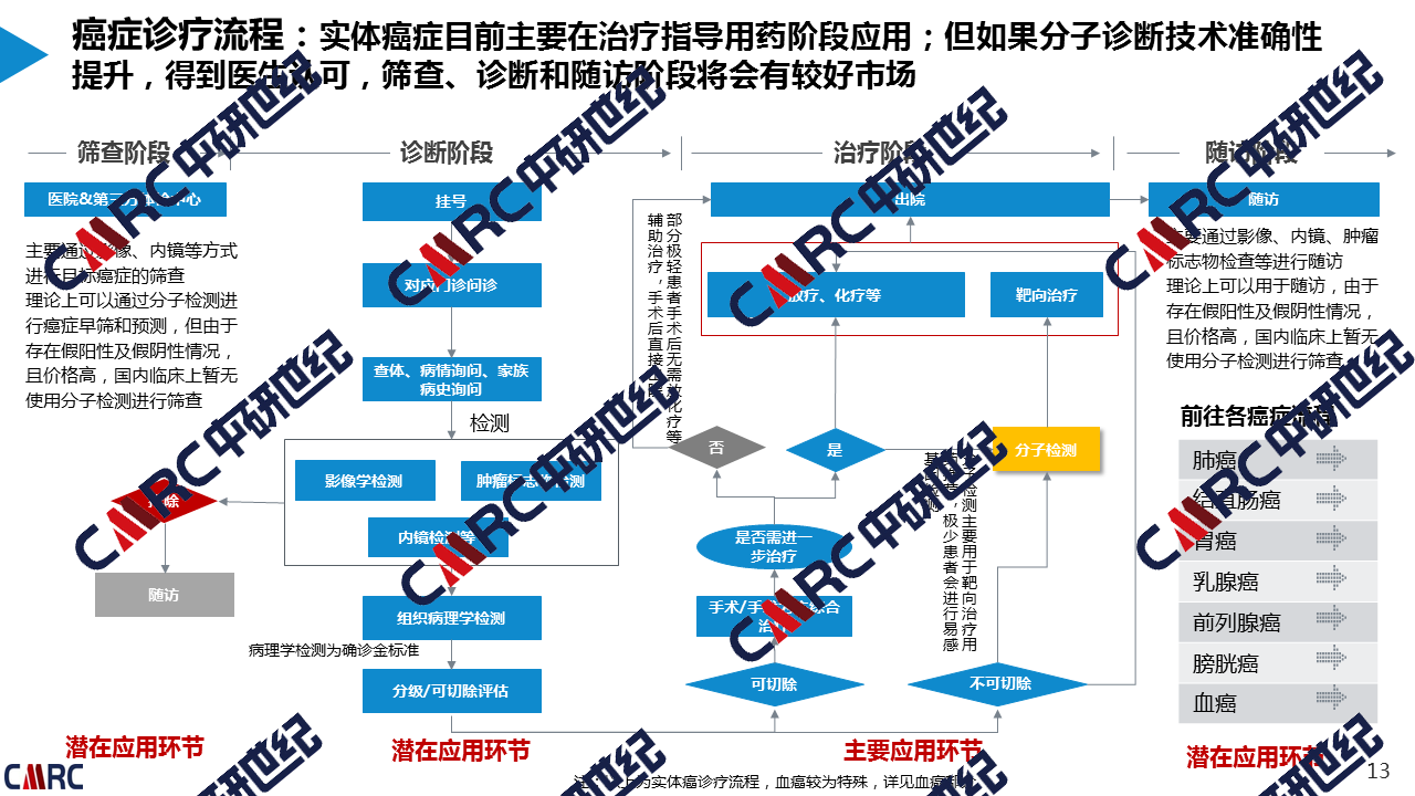 賽沛是丹納赫旗下專注分子診斷系統(tǒng)技術(shù)的國際企業(yè),其GeneXpert系統(tǒng)整合樣品制備、擴(kuò)增及檢測三個(gè)步驟于一個(gè)獨(dú)立的試劑盒中,并將其自動化,大量縮減人工,減少污染。 當(dāng)前腫瘤疾病發(fā)病率居高不下,委托方準(zhǔn)備將國外已成熟應(yīng)用的“腫瘤伴隨診斷和疾病監(jiān)測”產(chǎn)品引入中國市場,希望通過市場研究,判斷市場機(jī)會有多大。