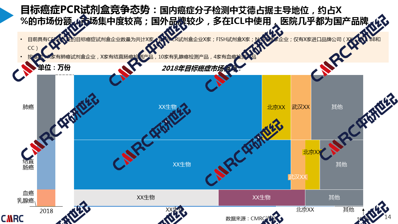 賽沛是丹納赫旗下專注分子診斷系統(tǒng)技術(shù)的國際知名企業(yè),其GeneXpert系統(tǒng)整合樣品制備、擴(kuò)增及檢測三個步驟于一個獨立的試劑盒中,并將其自動化,大量縮減人工,減少污染。 當(dāng)前腫瘤疾病發(fā)病率居高不下,委托方準(zhǔn)備將國外已成熟應(yīng)用的“腫瘤伴隨診斷和疾病監(jiān)測”產(chǎn)品引入中國市場,希望通過市場研究,判斷市場機(jī)會有多大。