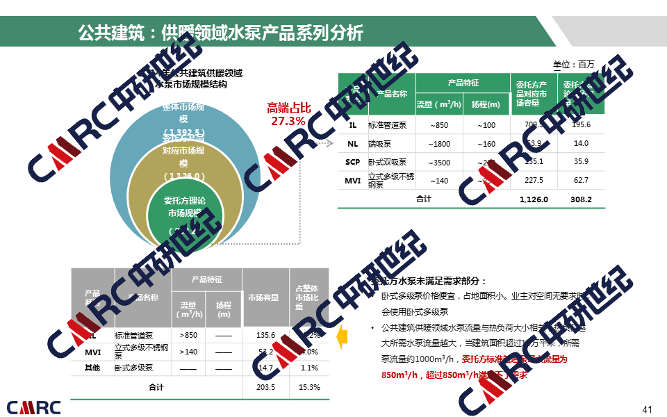 客戶需求:委托方期望通過本次研究對水泵市場進(jìn)行全結(jié)構(gòu)研究,從應(yīng)用領(lǐng)域、應(yīng)用環(huán)節(jié)、區(qū)域、產(chǎn)品類型多個(gè)維度交叉分析水泵產(chǎn)品市場規(guī)模,并從中確定委托方的理論市場規(guī)模。