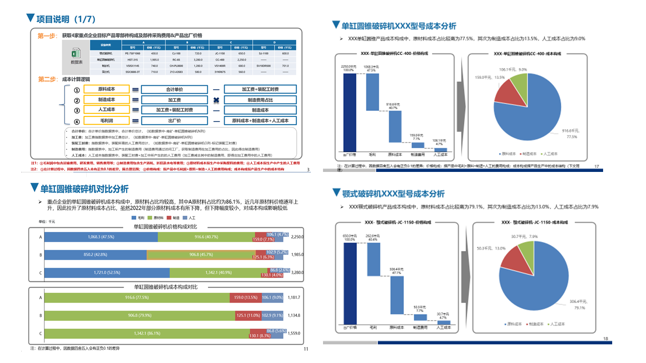客戶(hù)需求:對(duì)標(biāo)桿企業(yè)的重點(diǎn)產(chǎn)品價(jià)格、生產(chǎn)成本及利潤(rùn)水平進(jìn)行調(diào)查分析,為客戶(hù)礦山設(shè)備市場(chǎng)定價(jià)策略提供依據(jù)。