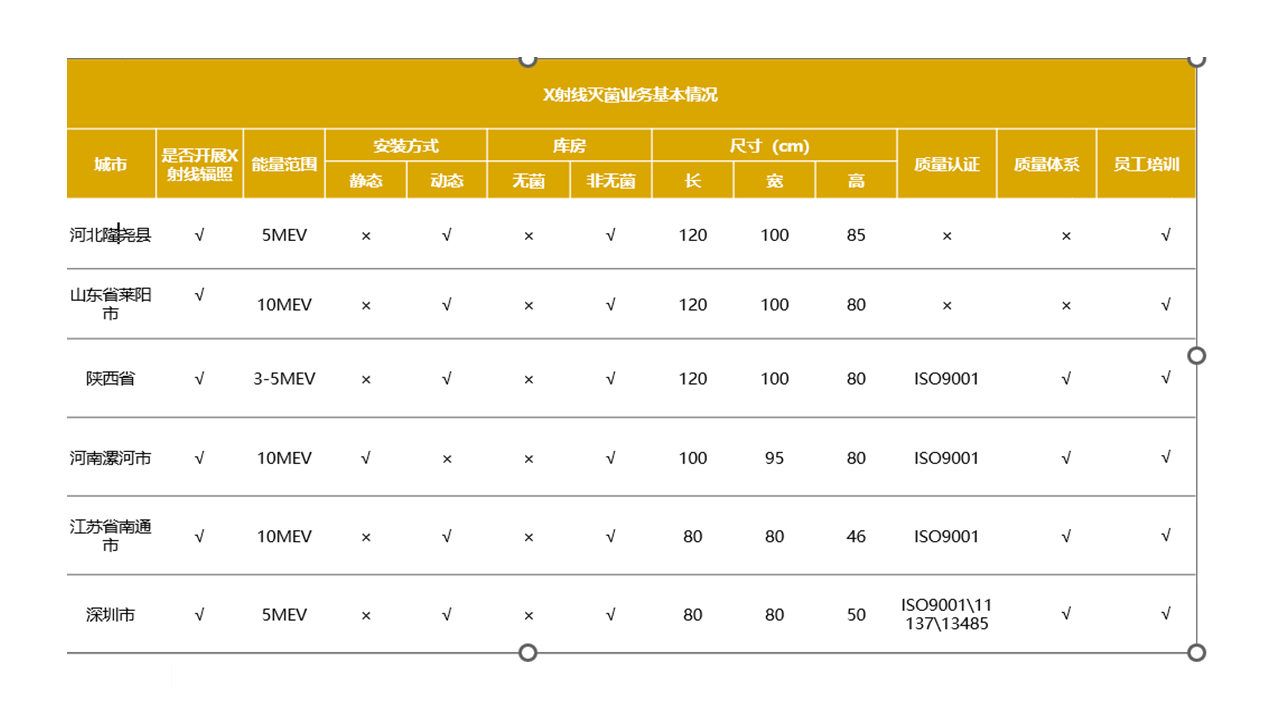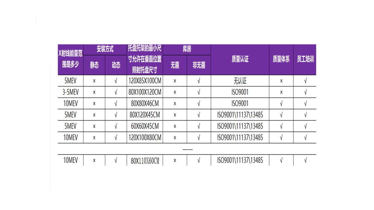 客戶提出需要了解國(guó)內(nèi)X射線滅菌服務(wù)的供應(yīng)商名單,X射線加速器品牌,射線能量范圍是多少,安裝方式,設(shè)備有無(wú)認(rèn)證,了解企業(yè)未來(lái)半年是否有做X射線滅菌服務(wù)的計(jì)劃。
