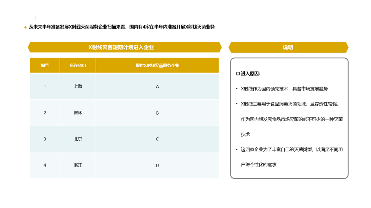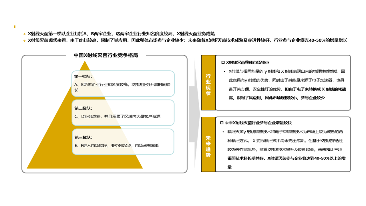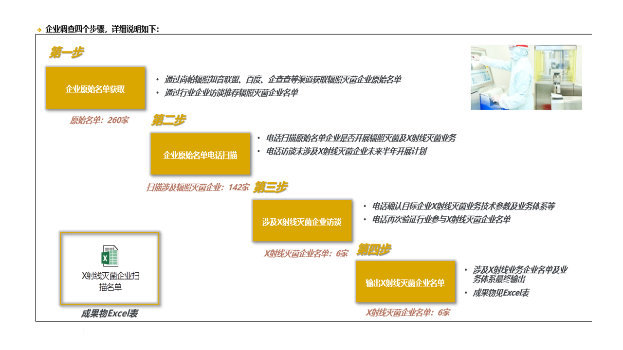 本次研究?jī)?nèi)容主要包括以下幾個(gè)方面:(1)X射線供應(yīng)商篩選、技術(shù)來(lái)源(2)安裝方式(3)射線的能量范圍和參數(shù)(4)產(chǎn)品的亮點(diǎn)分析(5)了解企業(yè)是否有X射線滅菌服務(wù)計(jì)劃(6)推薦最終優(yōu)質(zhì)供應(yīng)商方案。