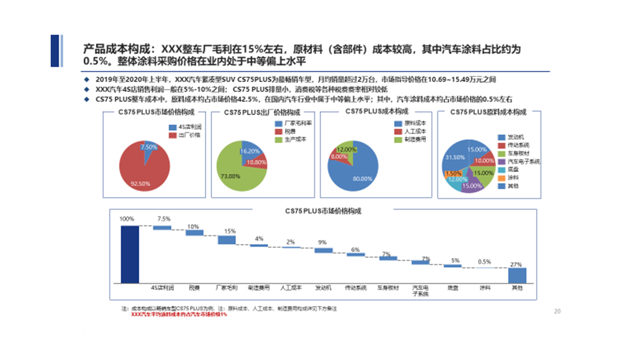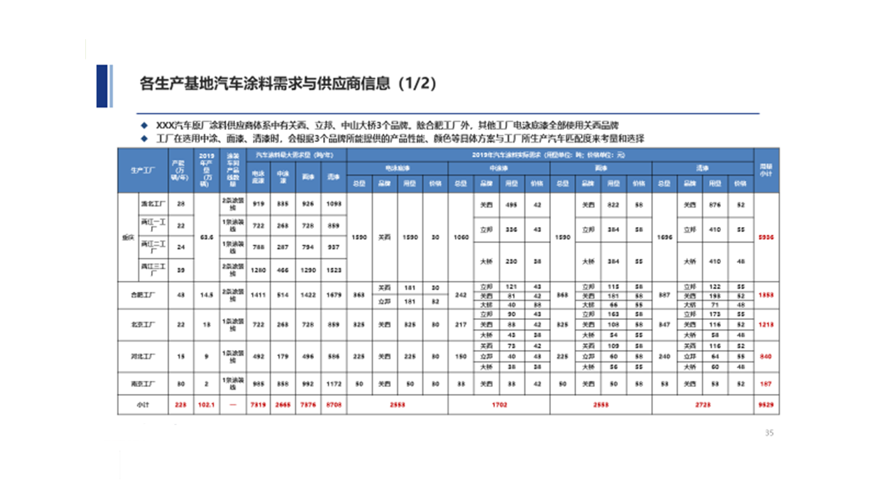 為委托方找到直接可公關(guān)的部門及對(duì)象,快速進(jìn)入客戶的供應(yīng)商體系提供了前提;并且在汽車涂料上深入對(duì)標(biāo)競(jìng)爭(zhēng)企業(yè)的產(chǎn)品,發(fā)現(xiàn)自身的不足,為后期改善產(chǎn)品及銷售產(chǎn)品提供了相關(guān)依據(jù)。