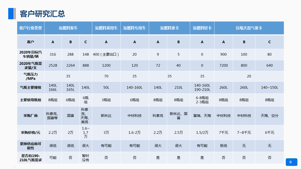 客戶需求:通過同行企業(yè)和下游用戶的調(diào)查,找到III型氣瓶最大需求的有效市場,以確定業(yè)務(wù)方向,同時了解190-210L氣瓶的市場需求情況,以解決現(xiàn)有銷售問題。