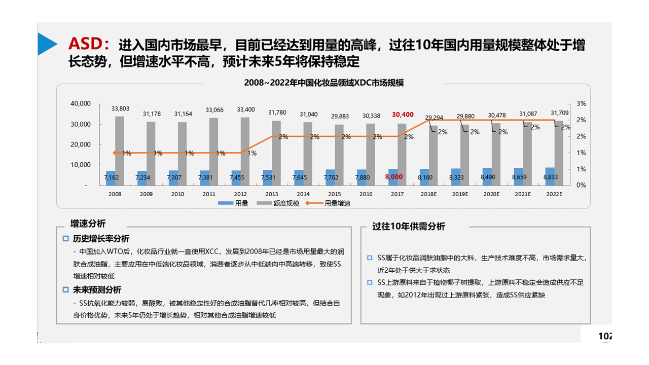 客戶需求:委托方希望通過對國內(nèi)大陸市場三甲基異壬酸異壬酯市場機(jī)會(huì)探究,來決策未來是否布局該業(yè)務(wù),以及如何布局。挖掘以進(jìn)口為主的潤膚脂產(chǎn)品現(xiàn)狀及未來前景,為委托方尋找直接投資的細(xì)分產(chǎn)品。