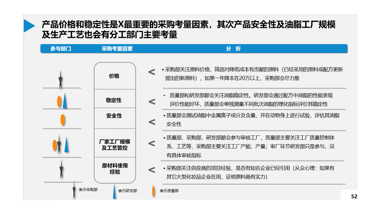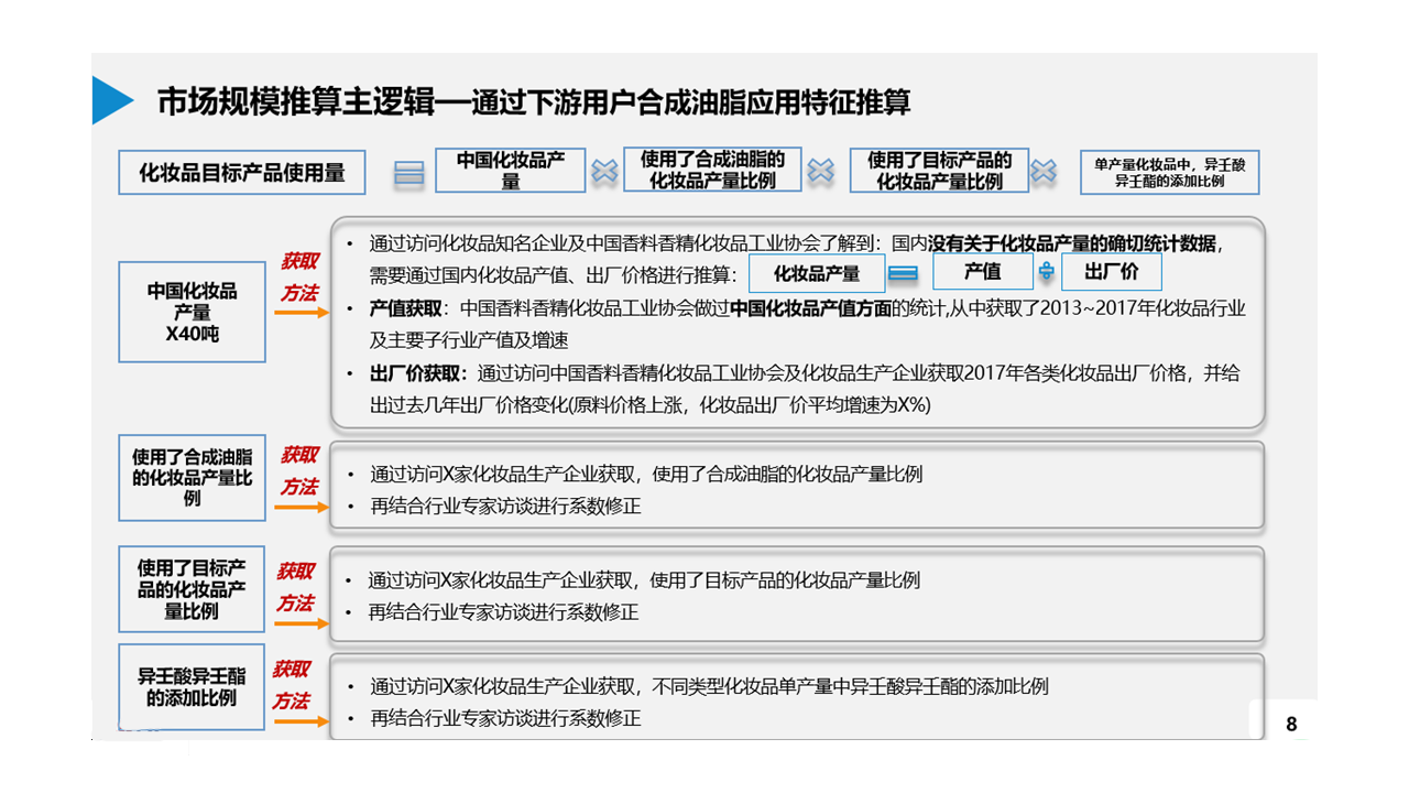 服務(wù)內(nèi)容:通過對國內(nèi)化妝品原料的需求量及國產(chǎn)企業(yè)供應(yīng)量及質(zhì)量研究,挖掘直接布局的產(chǎn)品;通過日化油脂生產(chǎn)商研究,了解市場競爭態(tài)勢及企業(yè)定位;通過下游用戶研究,了解下游化妝品行業(yè)用戶行為特征和需求;幫助委托方尋找方向點(diǎn)及合作企業(yè)。