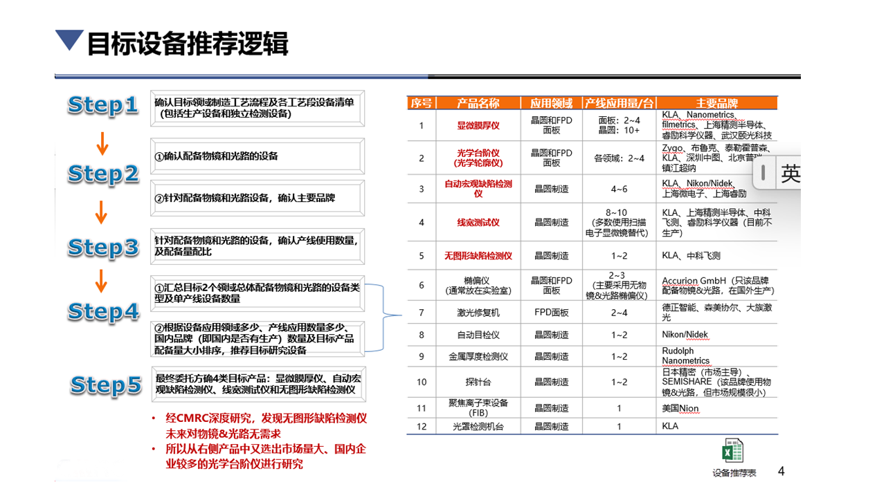服務(wù)內(nèi)容:半導(dǎo)體和面板領(lǐng)域目標(biāo)產(chǎn)品的市場規(guī)模潛力、產(chǎn)品主要配別設(shè)備及應(yīng)用特征、下游采購行為等。