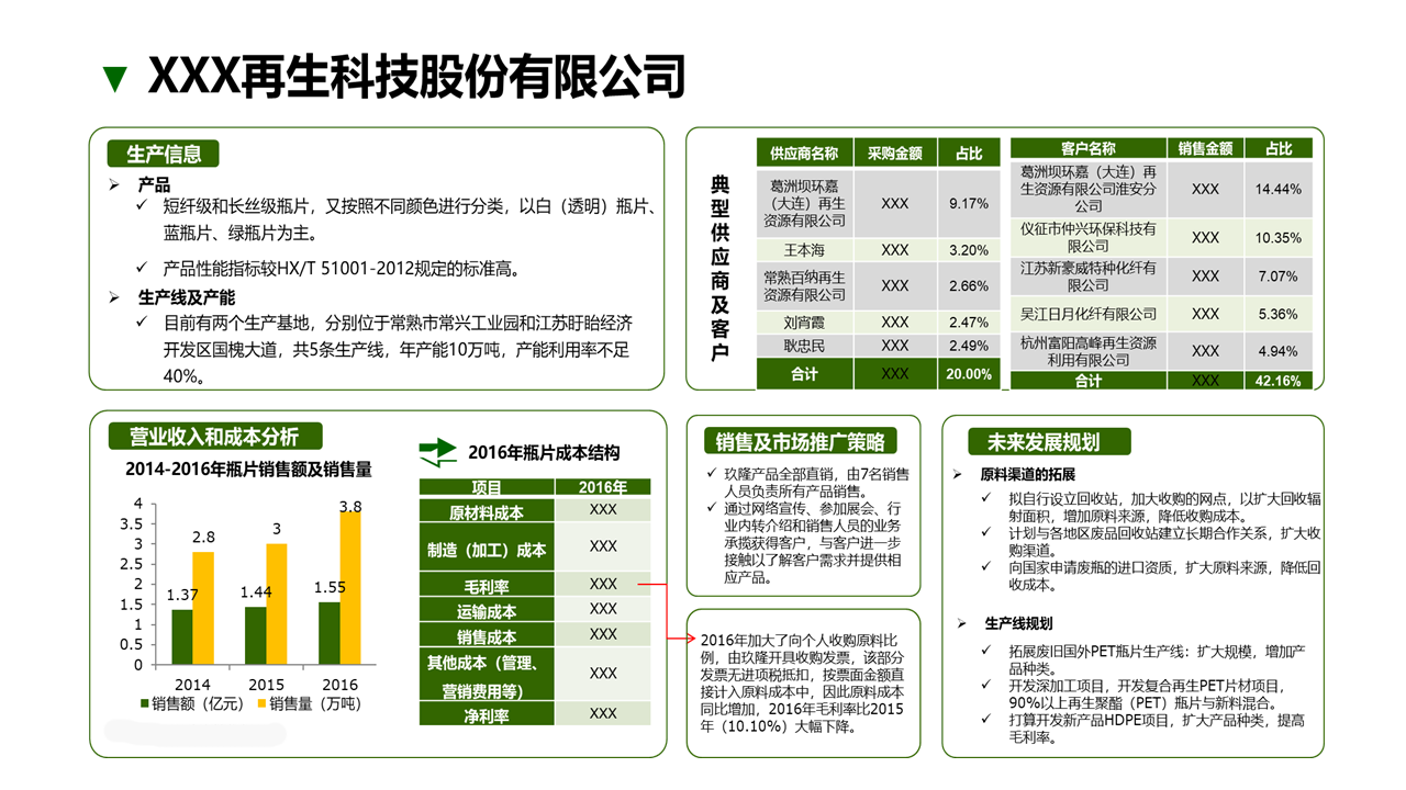 研究成果:從市場(chǎng)規(guī)模,產(chǎn)品及利潤(rùn)、市場(chǎng)競(jìng)爭(zhēng)格局和客戶需求等分析,給出最終產(chǎn)品類(lèi)型選擇建議,分區(qū)域產(chǎn)能設(shè)計(jì),并最終給出進(jìn)入廢舊PET處理下游行業(yè)SWOT分析。