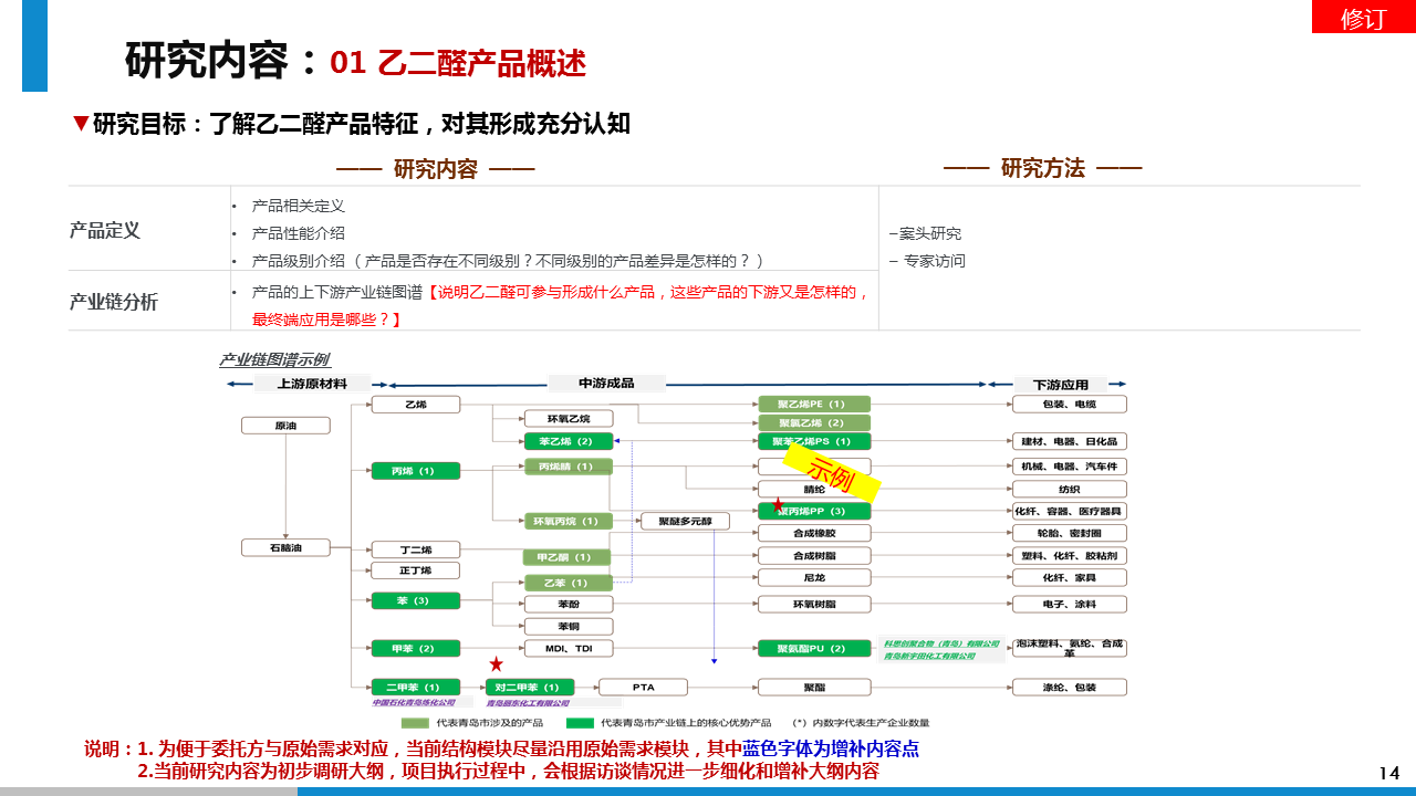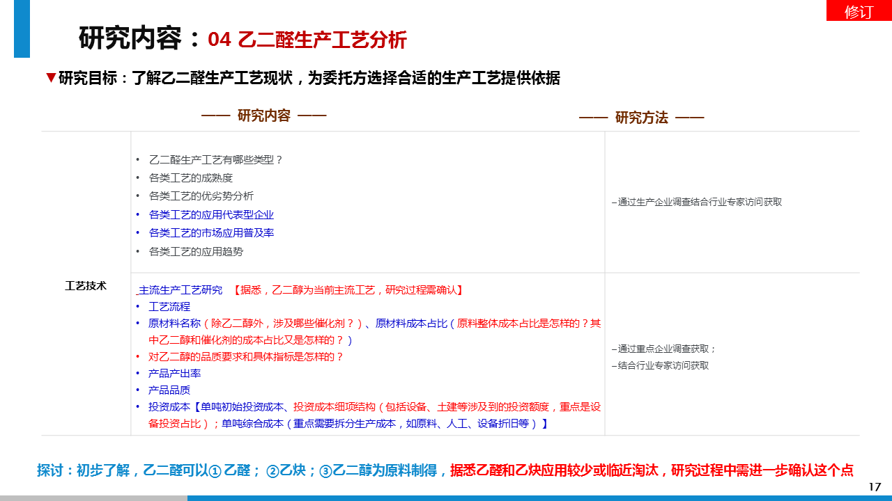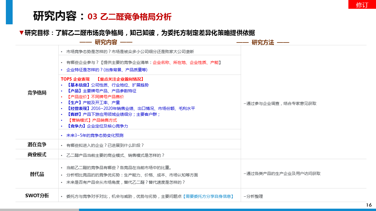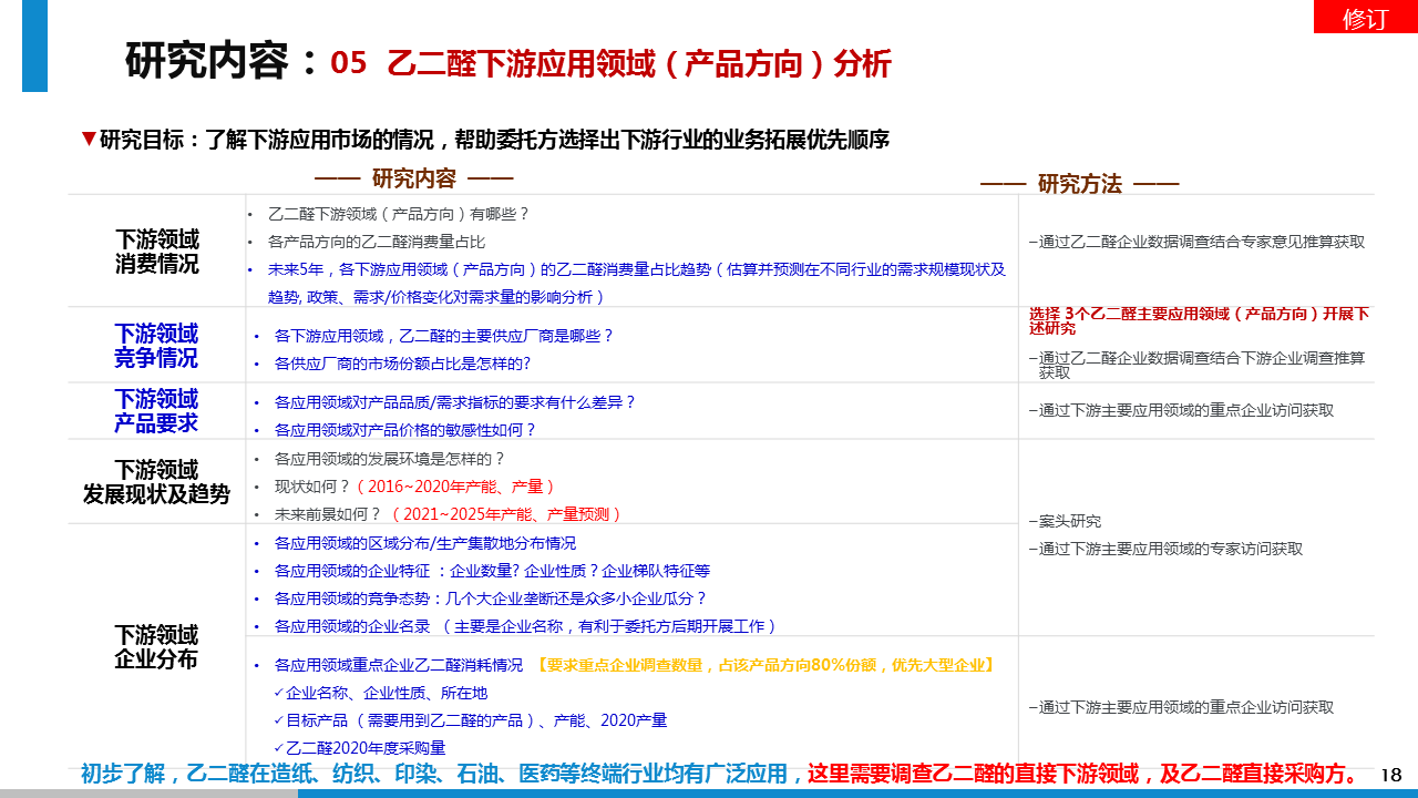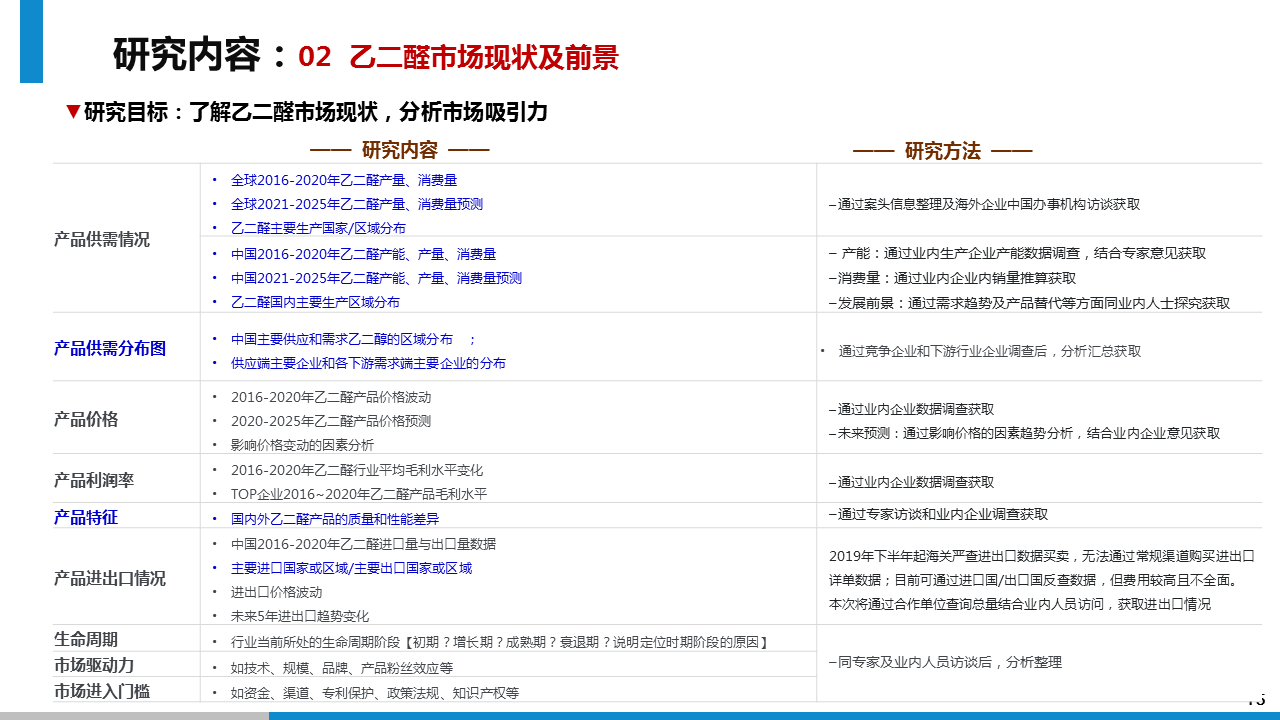 透過此次市場調(diào)研,我方通過對對乙二醛項目的可行性判斷、行業(yè)的壁壘及風(fēng)險分析、投資收益分析等方面的調(diào)研分析,給予委托方進入乙二醛行業(yè)的市場策略建議。