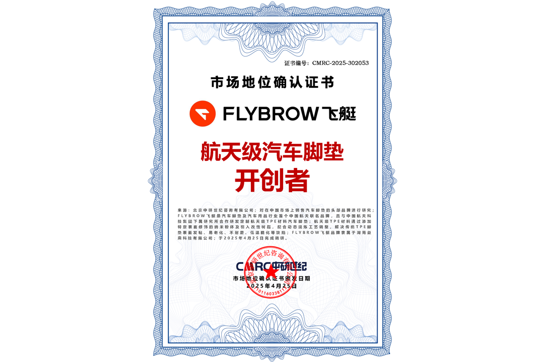 首頁 > 市場地位證明 > 市場地位證明丨飛艇-航天級汽車腳墊開創(chuàng)者