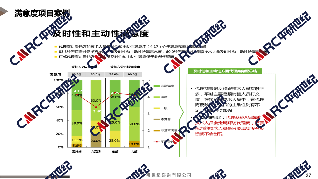 服務(wù)內(nèi)容:為深度挖掘代理商心底的聲音,調(diào)查過程除指標(biāo)打分體系外,更加注重原因挖掘。讓被訪者對本品和A品牌圍繞產(chǎn)品、銷售、技術(shù)、品牌、市場推廣、交貨6個(gè)方面進(jìn)行感受對比,以了解委托方品牌的真實(shí)表現(xiàn)。