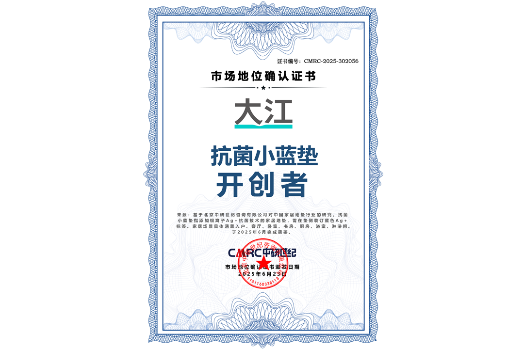 首頁 > 市場地位證明 > 市場地位證明丨大江抗菌小藍墊開創(chuàng)者