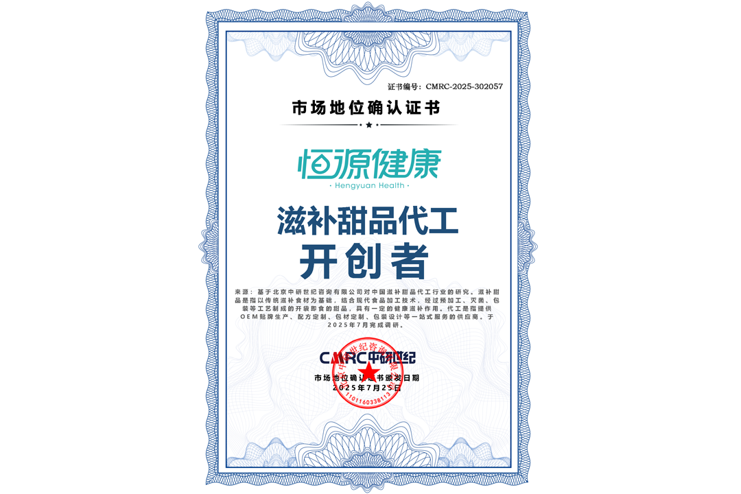 首頁 > 市場(chǎng)地位證明 > 市場(chǎng)地位證明丨恒源健康-滋補(bǔ)甜品代工開創(chuàng)者地位證明
