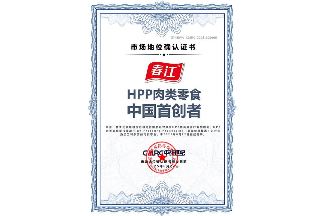 首頁 > 市場地位證明 > 市場地位證明丨春江食品-市場地位系列認證書